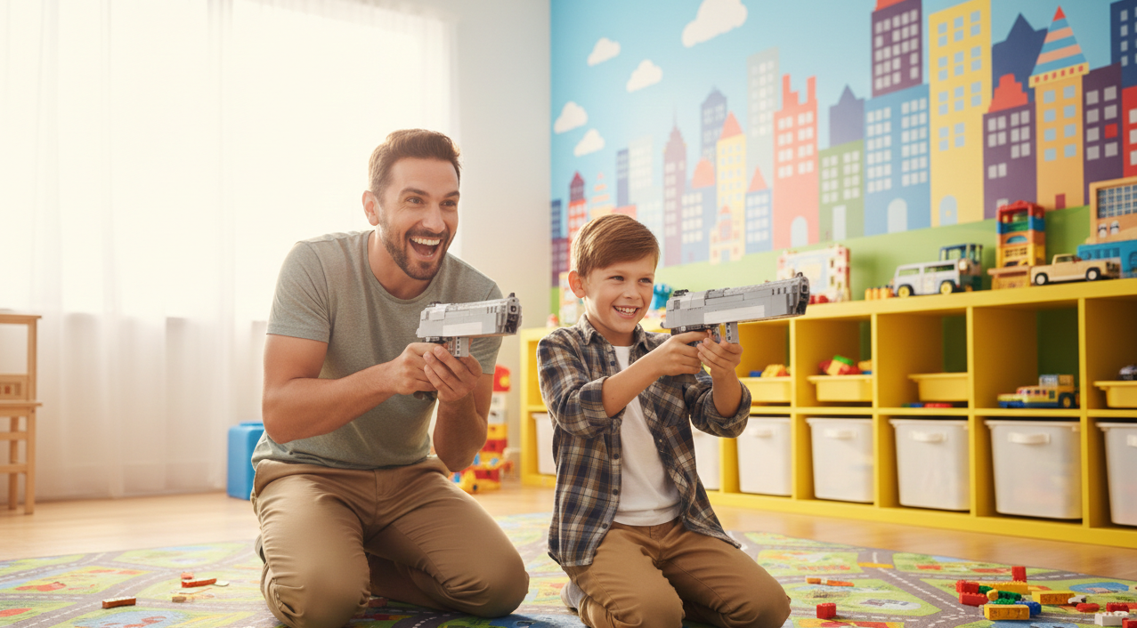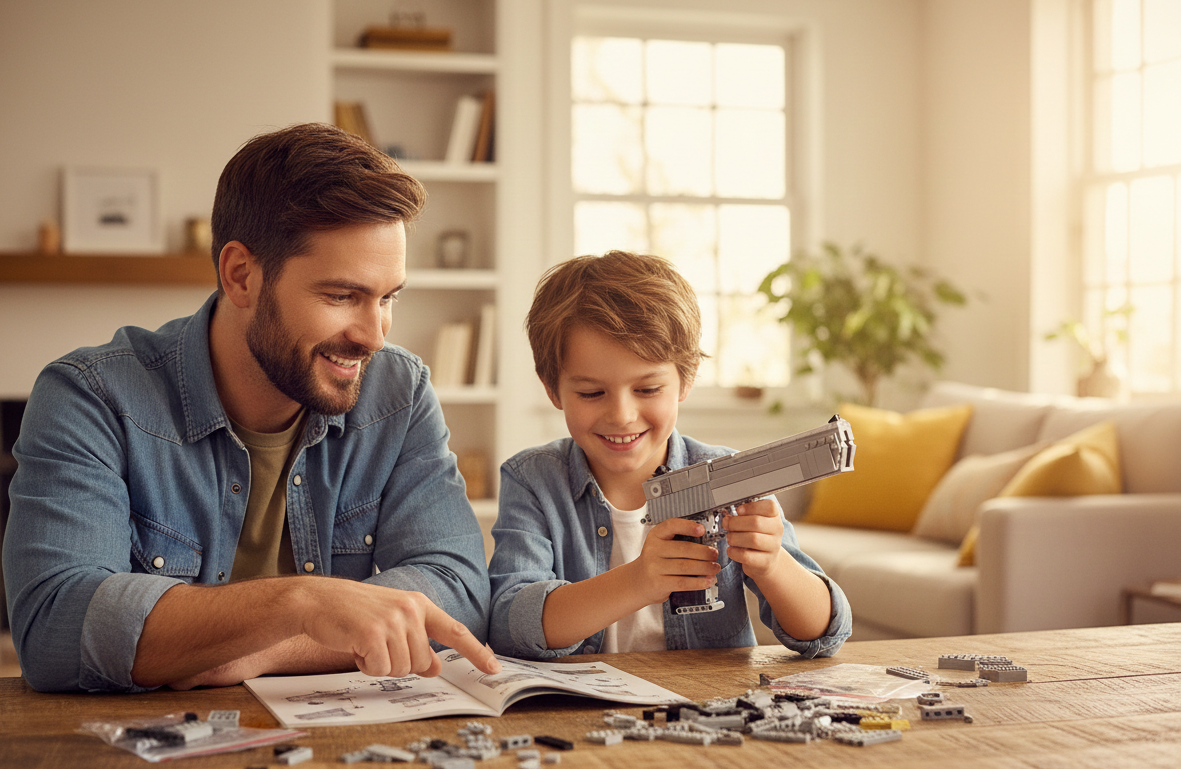 Build your own automatic handgun with 528 pieces. 12+ Age, perfect to gift your little geniuses at home who are block lovers. The Caliber Precision handgun can shoot real plastic projectiles . Features: Shoots plastic Projectiles Comes with 5 plastic projectile blocks, 528 pieces Recommended for ages 12 and up.